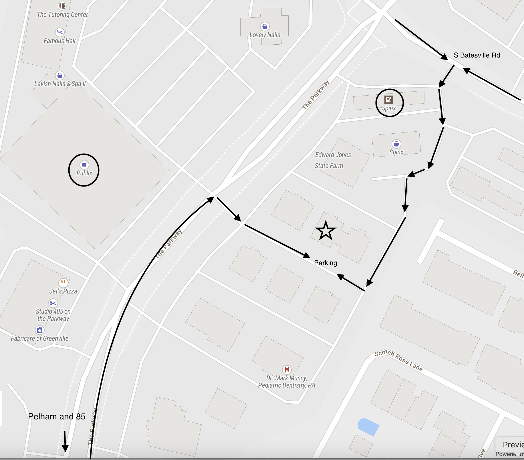 Please note, that there are multiple buildings at 420 The Pkwy. Please locate Suite K (see the star on the map). When you walk into the front doors, please enter the suite on the left.